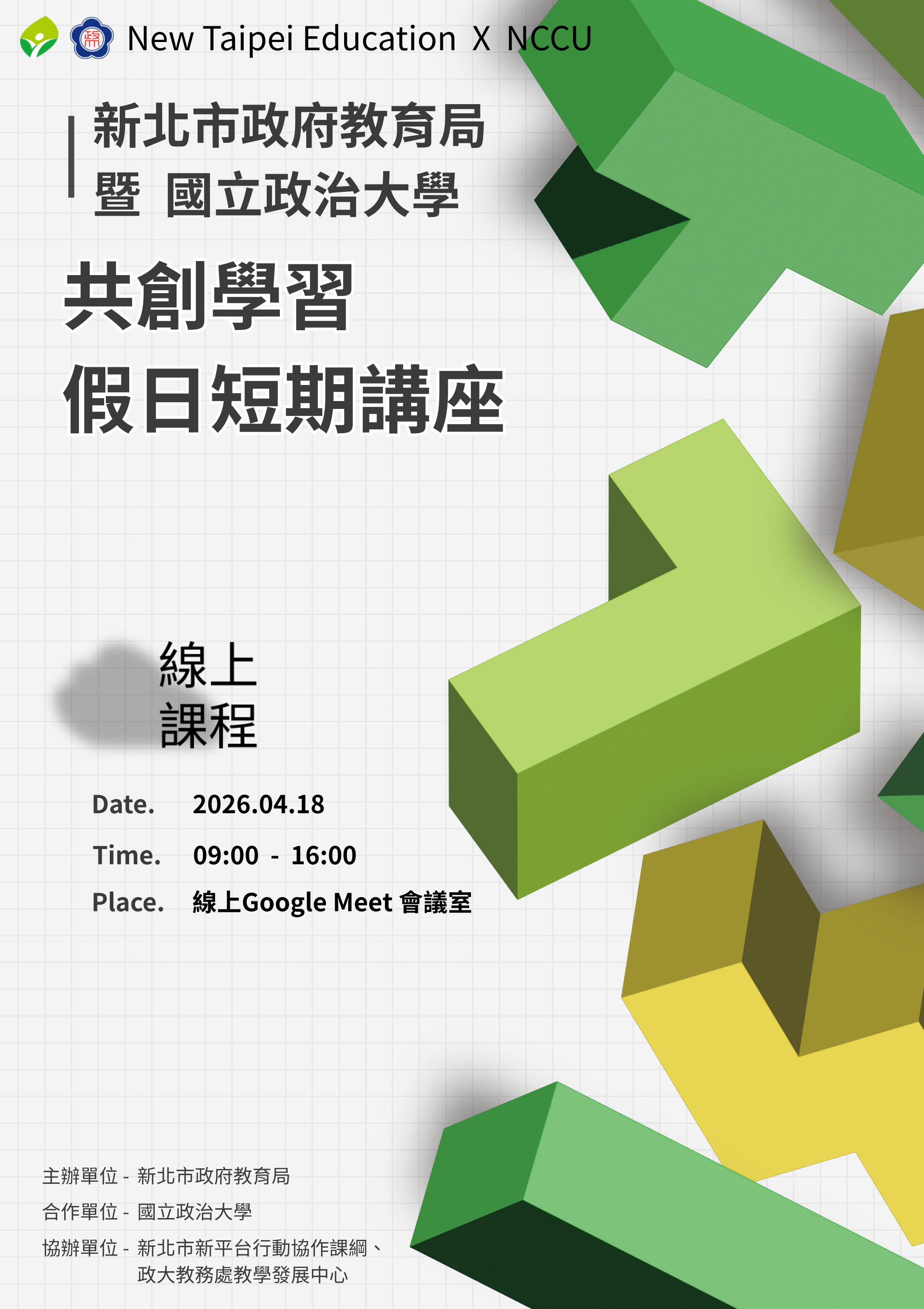 延續雙方合作成果,新北市政府教育局與國立政治大學於114學年度第2學期共同辦理微課程專班(AP課程),邀請新北市高中職生透過數位學習模式,搶先體驗大學專業課程。